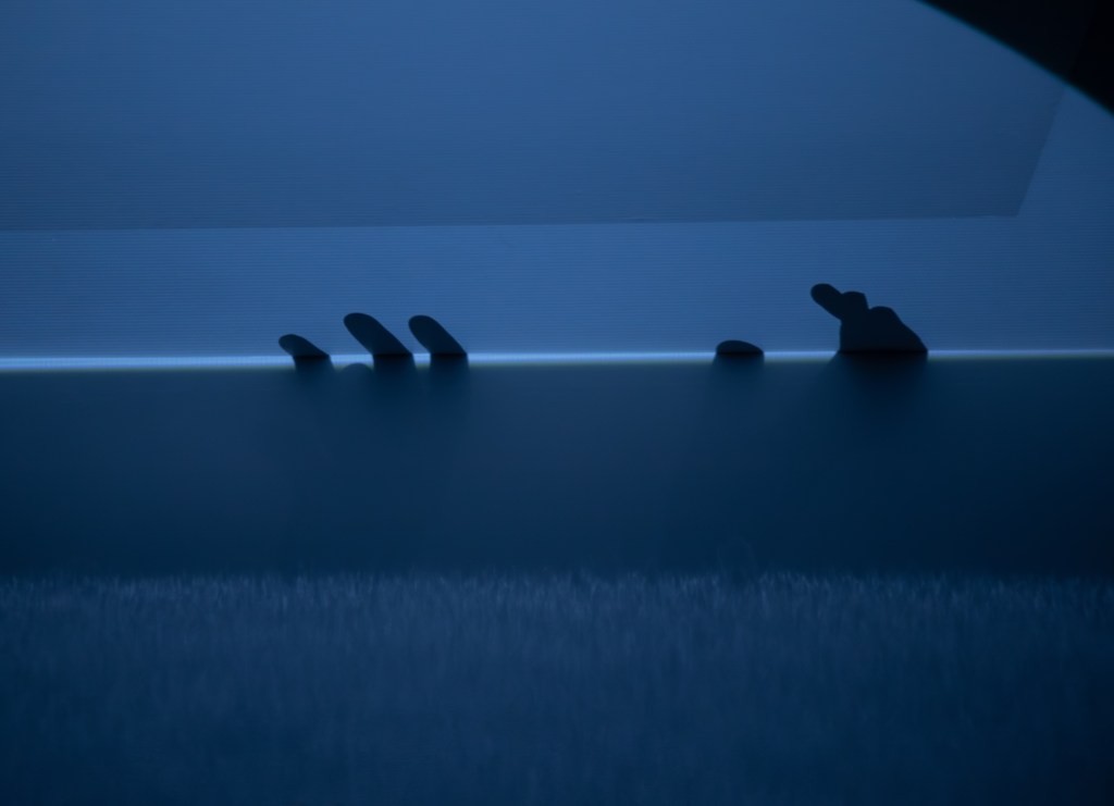 Dans cette série, les ombres des mains deviennent langage et émotion. Elles émergent d’une fine ligne lumineuse, comme un seuil fragile entre deux mondes. Une main ouverte, calme, presque rassurante, semble souffler un message silencieux : « Je suis là. Tout ira bien. »
